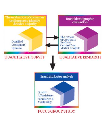 Our evaluation process is comprised on a nationwide qualified consumer survey (quantitative study), expert analysis and attributes based qualitative brand research.